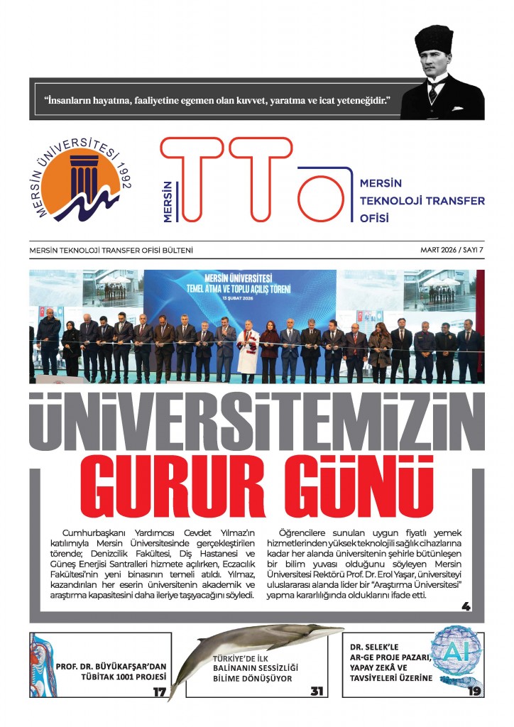 Üniversitemiz Mersin Teknoloji Transfer Ofisi (TTO) E-Bülteni’nin yedinci sayısı okuyucularla buluşuyor. Üniversitemizdeki projeleri/bilimsel etkinlikleri daha görünür kılmak ve bu konuda bir motivasyon aracı oluştur